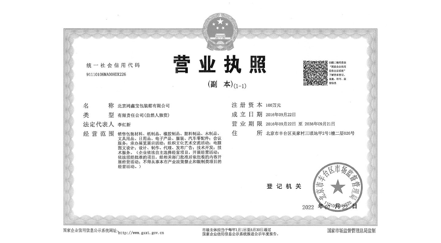 北京鸿鑫宝包装箱有限公司(原2006年注册北京鑫源宏宝木质包装箱有限公司)是一家主要从事木质类包装箱,免熏蒸木箱,箱制作的厂家。我们的产品包含木包装箱,木托盘,免熏蒸托盘,精密箱,出口包装箱,防震、防腐、防潮真空包装等包装箱等,可根据客户需求定制各种包装箱产品。